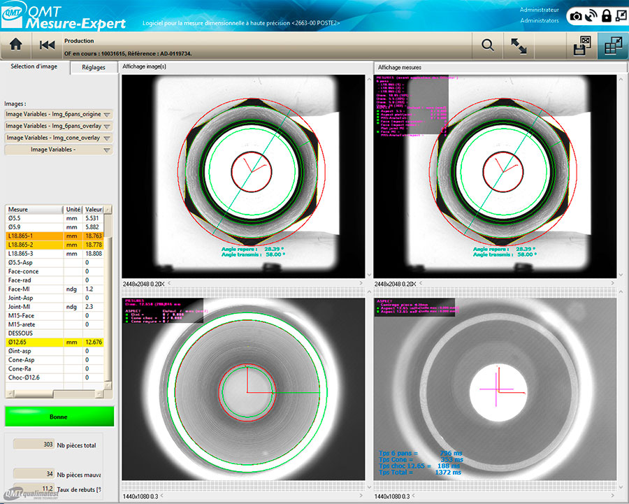 Coté vision, L’équipe Vision de qmt a conçu 4 postes de vision afin de réaliser plus de 30 contrôles variés sur 4 références :
