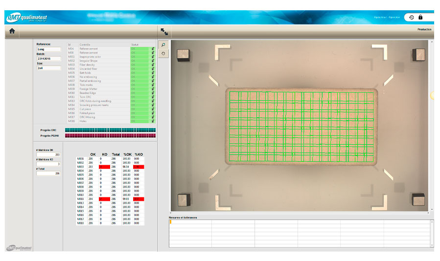 The aesthetic checks to be carried out have acceptance limits that cannot be easily defined quantitatively. In order to define the feasibility of the controls, their limits and to quantify the tolerances, a detailed study formalized by a report has to be carried out. This study made it possible to finalize the URS to define the technical solution and the costs. On this basis qmt made a commitment on the specifications, the price and the completion time.
