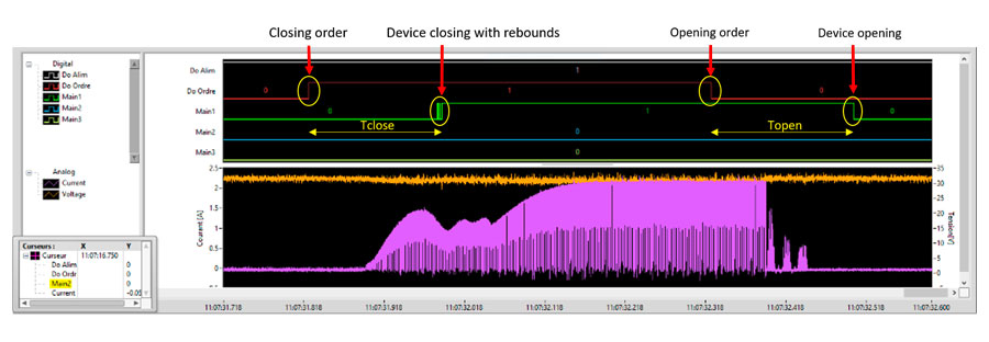 Die Messungen ermöglichen es dem Kunden, das Produkt anhand der Vorlage für die Produktionskonformität zu validieren. Über die anfänglichen Erwartungen des Kunden hinaus bietet die Bank die Möglichkeit, Fehler in der Steuerelektronik präventiv zu diagnostizieren. Diese präventive Diagnose erfolgt durch eine detaillierte Analyse der Formen der Oszillogramme, die durch die hohe Abtastfrequenz und die Messgenauigkeit ermöglicht wird.