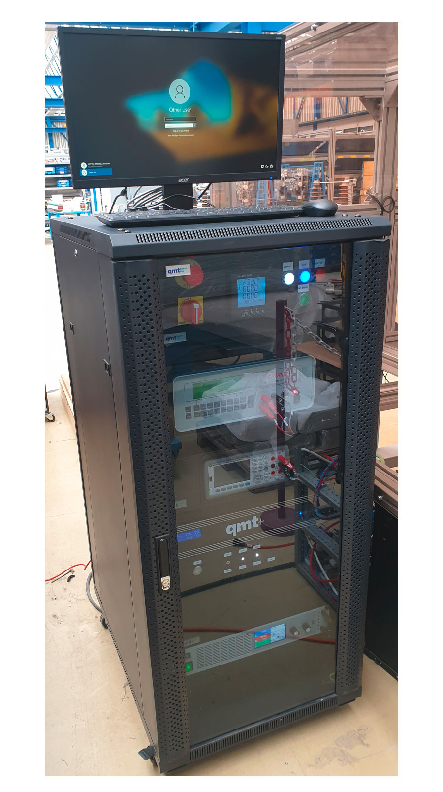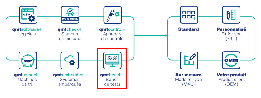 Alle Gewerke beherrschend , die für die Realisierung eines Prüfstandes notwendig sind (Elektronik, Elektrotechnik, Messtechnik, IT, Software, ...) hat qmt diesen Prüfstand beim Kunden konzipiert, entwickelt, produziert und in Betrieb genommen. qmt führt auch alle Dienstleistungen durch, um die Wartung unter Betriebsbedingungen zu gewährleisten