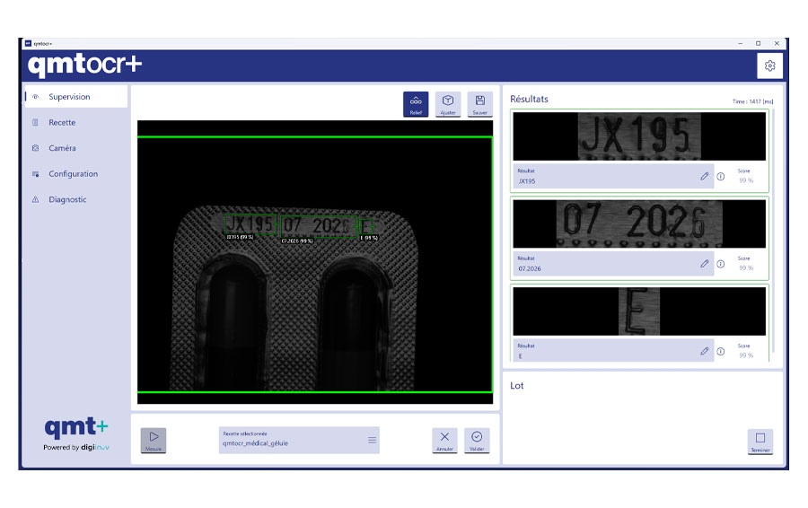 Les qmtocr sont maintenant aussi disponibles pour des applications médicales. Les éclairages du qmtocr permettent l'acquisition d'images contrastées en conditions difficiles. L'algorithme permet la lecture automatique avec un taux de lecture supérieur à 98%, la vérification (OCV) ou une classification de patterns.